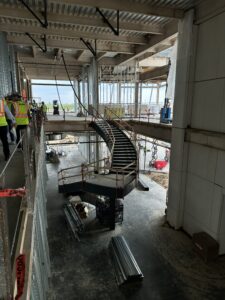 The parking garage is nearly complete, and enclosure work continues to move the Convention Center forward with power, windows, and glass getting ready to be installed. It’s exciting to see construction progress